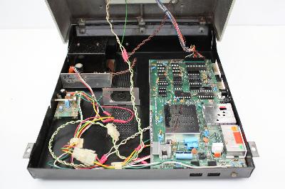 Under the hood of the Educator 64. This has a modified C64 motherboard and extra circuitry for audio on the left.(e)